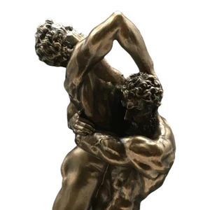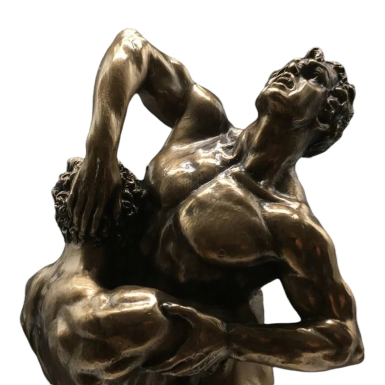 Crafted using cold cast bronze and resin, this sculpture features a rich metallic finish with fine detailing that highlights the muscular forms, intense motion, and dramatic tension of the scene. The dynamic pose captures the raw energy of the struggle, making it a powerful statement piece for any interior.