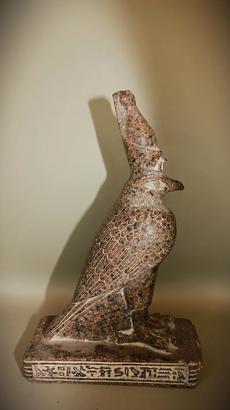 Honor the power and divine authority of ancient Egypt with this Horus Royal Egyptian Artifact. Inspired by Horus, the falcon-headed god of kingship, protection, and the sky, this piece represents one of the most important deities in Egyptian civilization. Horus was believed to be the divine protector of pharaohs, symbolizing rightful rule, strength, and cosmic order.