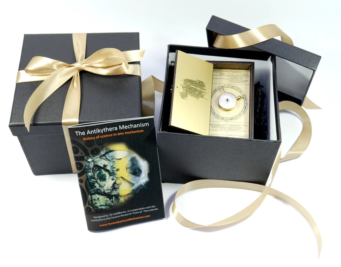 A detailed 1:3 replica of the ancient Greek Antikythera Mechanism, featuring moving parts and an educational booklet. Perfect for collectors, educators, and history enthusiasts.